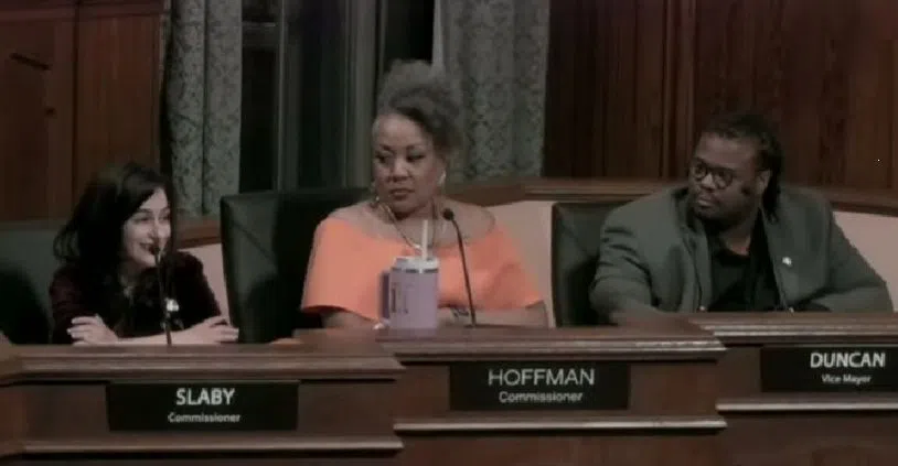 New commissioners Jacqueline Slaby and Drew Duncan were sworn in, as was returning commissioner Stephanie Hoffman and Mayor Dave Anderson.